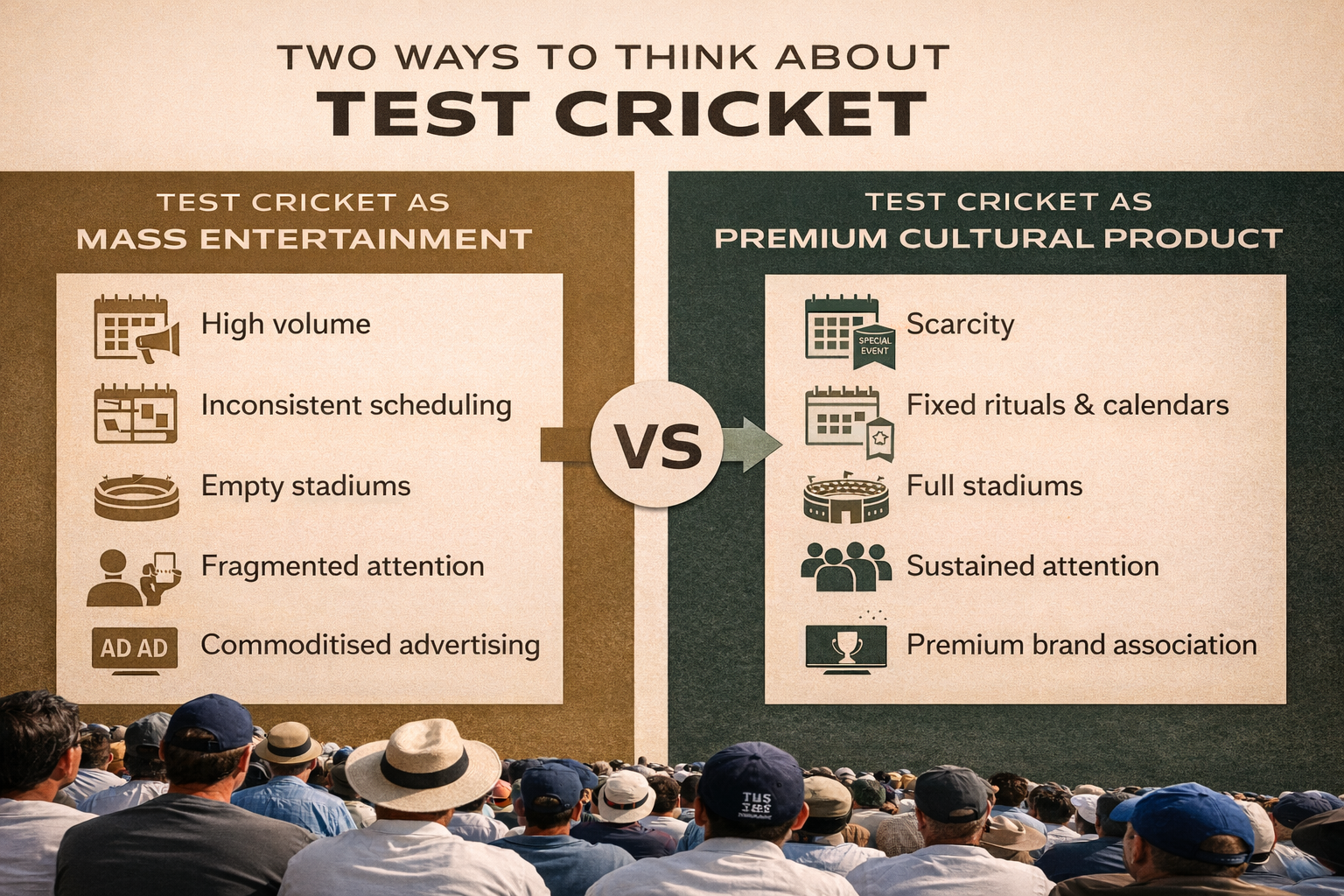 For 150 years, Test cricket’s first innings built the foundations of the sport’s global brand. Its second innings will require a different way of thinking — about audience, scarcity, place, and value.