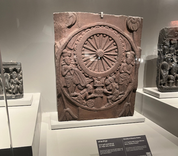 [Worship of Dharma Chakra, symbol of Buddha's teaching. Red sandstone relief from Bharhut, Madhya Pradesh. Image credit: Jay Vikram Bakshi]