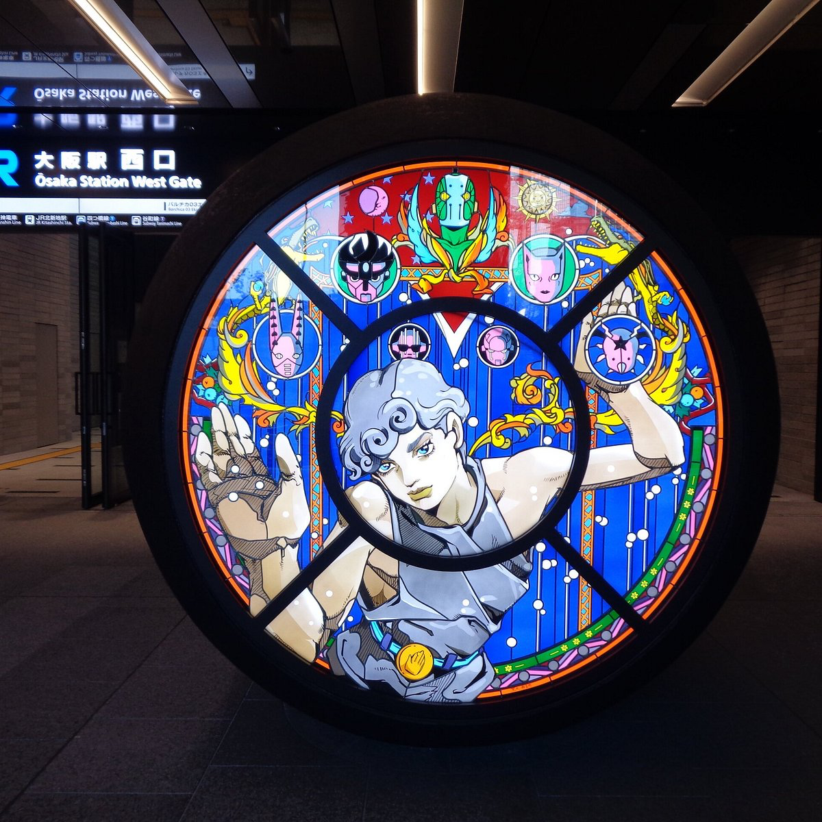 The influence is ubiquitous. The easiest way is to show you a commissioned stained glass in Osaka station. This is from JoJo’s Bizarre Adventure. And the manga art has also been showcased at the Louvre.