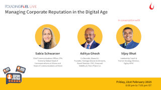 This Founding Fuel Live discussion explored crisis management, trust-building, and stakeholder engagement in the digital age. The session brought together corporate leaders and communication experts to explore how reputation today is shaped in real time—by social media, AI-driven amplification, and a fragmented public discourse.